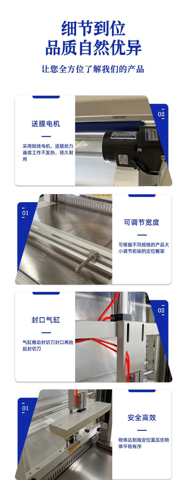 批量生產對設備的連續運行能力要求極高,袖口式熱收縮包裝機通過三大設計確保穩定性:其一,采用重型鋼結構機身,搭配精密軸承與耐磨輸送帶,長期運行后機身無明顯晃動,輸送帶磨損率降低 60%,使用壽命可達 3-5 年;其二,搭載進口 PLC 控制系統與伺服電機,核心部件故障率低于 0.3%,可支持 24 小時連續作業,即使在食品飲料行業 “旺季日產 10 萬瓶” 的高強度生產場景下,也能保持穩定運行;其三,配備完善的保護機制 —— 當加熱管溫度異常、包裝膜斷膜、輸送帶卡瓶時,設備會自動切斷電源或暫停運行,并在觸控屏上顯示故障原因,操作人員可快速排查維修,平均停機維修時間控制在 15 分鐘以內,大幅減少因設備故障導致的產能損失。