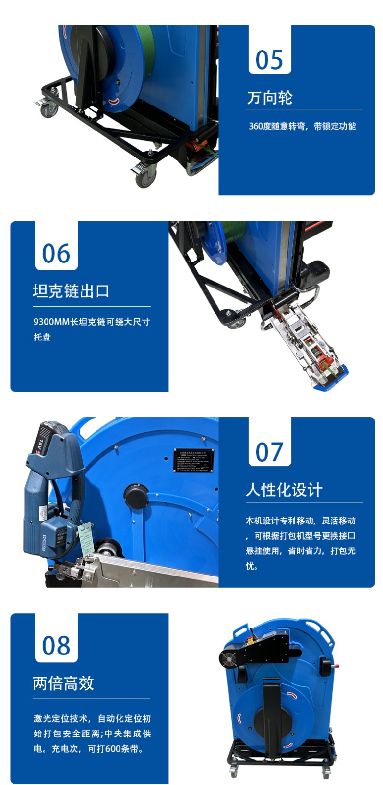 - 導(dǎo)向系統(tǒng):由多個導(dǎo)向輪和導(dǎo)軌組成。導(dǎo)向輪一般是可以靈活轉(zhuǎn)動的滾輪,它們可以根據(jù)打包帶的寬度和穿帶路徑進行調(diào)整。導(dǎo)軌則是為打包帶提供了一個固定的通道,確保打包帶沿著預(yù)定的路線行進。比如,當(dāng)打包帶需要轉(zhuǎn)彎時,導(dǎo)向輪會將其引導(dǎo)到合適的軌道上。