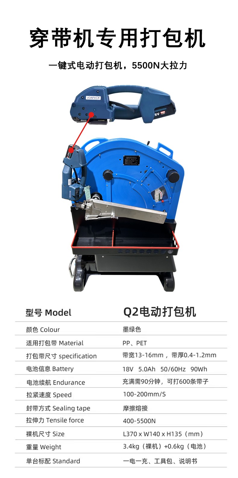 - 穿帶機是一種在包裝流程中起輔助作用的設(shè)備,主要用于將打包帶穿過被包裝物品周圍或包裝結(jié)構(gòu)中的特定位置,以便后續(xù)進行打包操作。它可以被看作是包裝自動化生產(chǎn)線中的一個環(huán)節(jié),能夠有效提高打包的效率和準(zhǔn)確性。