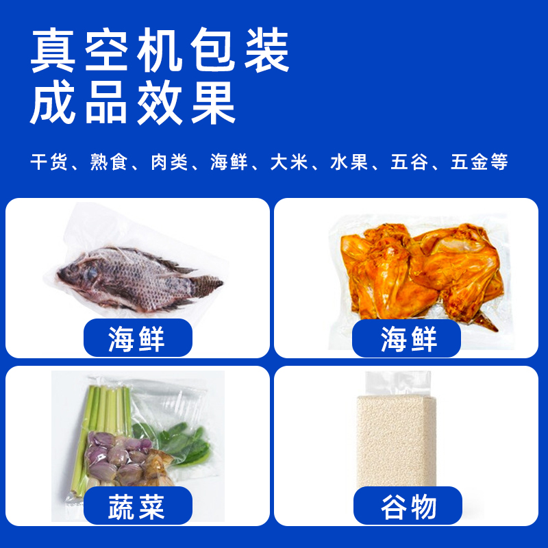 • 食品行業:常用于肉類、魚類、禽類、蔬菜、水果、糕點等食品的真空包裝,可延長食品的保質期,防止食品氧化、霉變和腐敗。例如,將新鮮的肉類真空包裝后,可在常溫下保存數天甚至數周,而在冷藏條件下,保質期可進一步延長。