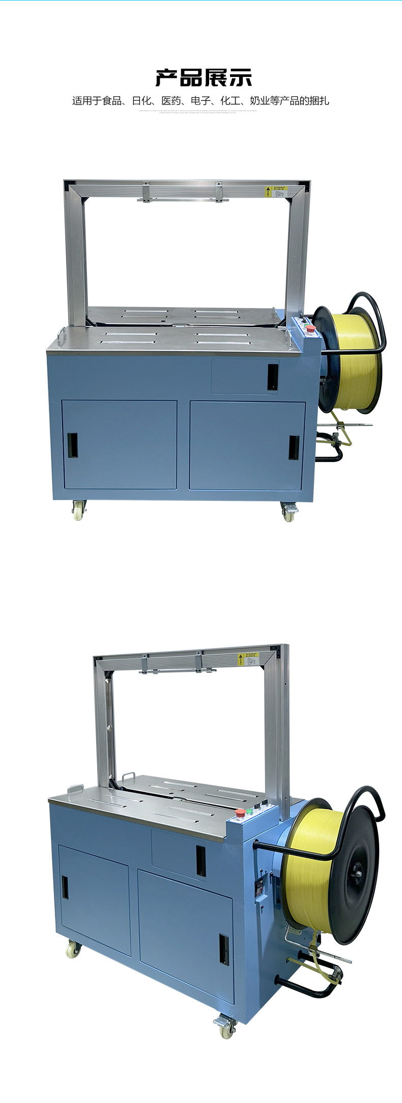 - 全自動伺服打包機(jī)通常具有簡潔、緊湊的外觀設(shè)計,整體結(jié)構(gòu)堅固耐用。其機(jī)身主要由框架、工作臺、輸送帶、控制箱等部分組成。框架一般采用優(yōu)質(zhì)金屬材料制成,經(jīng)過精細(xì)加工和表面處理,具有良好的穩(wěn)定性和耐腐蝕性。工作臺位于機(jī)器的中央位置,是放置待打包物品的區(qū)域,表面平整光滑,便于物品的放置和移動。輸送帶貫穿整個機(jī)器,用于輸送物品進(jìn)出打包區(qū)域,其寬度和長度根據(jù)不同的機(jī)型有所差異,以適應(yīng)各種尺寸的物品打包。控制箱通常安裝在機(jī)器的一側(cè),集成了操作面板和控制系統(tǒng),方便操作人員進(jìn)行參數(shù)設(shè)置和對機(jī)器的運行進(jìn)行監(jiān)控。