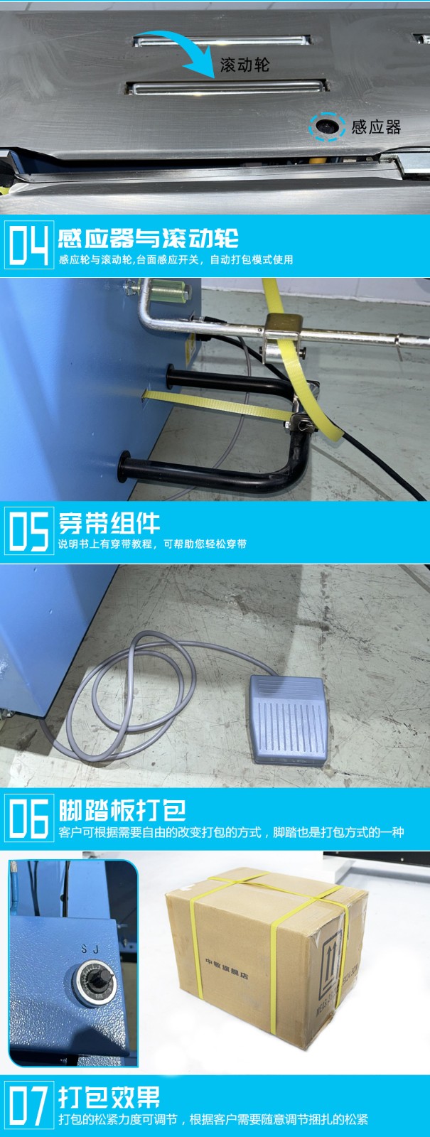 - 成品輸出:打包完成后,輸送帶會將打包好的物品送出打包區(qū)域,進(jìn)入下一道工序或直接進(jìn)行存儲、運輸。