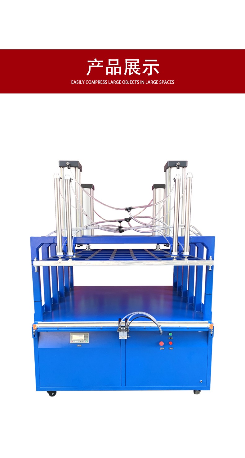 - 智能壓縮系統能夠根據產品的類型和特性自動調整壓縮策略。通過預先輸入產品的參數(如產品的材質、可壓縮性等),設備可以自動計算出合適的壓縮程度和壓縮速度。例如,對于柔軟的棉質家紡產品,壓縮系統會采用相對溫和的壓縮方式,避免損壞產品;而對于具有一定彈性的海綿類產品,壓縮系統可以在保證產品質量的前提下,實現更高程度的壓縮。